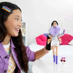 Barbie Extra Puppe Mit Lila Flausch-Kragen & Stiefel (schwarze Haare)