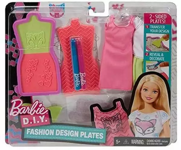 Junge Designer können mit Barbie D.I.Y Mode für die Barbie-Puppe kreieren. Fashion Design Teller-Sets (Puppen separat erhältlich). Jedes Set enthält alle Werkzeuge, die benötigt werden, um Design-Ideen mit Leichtigkeit zum Leben zu erwecken: drei wendbare Mode, drei wendbare Mode-Design-Platten, ein Design-Gehäuse, zwei Carbonplatten, ein Grafik-Transferwerkzeug und zwei Marker. Verschiedene Sets mit verschiedenen Farbschemas, modischen Tellern und Kleidungsstücken. Wählen Sie zu Beginn eine von drei mitgelieferten Moden – jedes Set kommt mit einem Kleid, einem Oberteil und einem Rock, die alle umkehrbar sind, um viel Ausdruck zu ermöglichen.