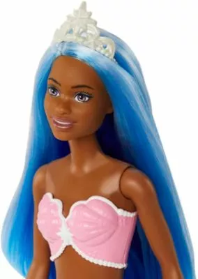 Barbie liebt Farben! Mit dieser bezaubernden Barbie Dreamtopia Meerjungfrau-Puppe von Mattel können tolle Unterwasser-Geschichten von magischen Abenteuern erfunden werden. Die bezaubernde Meerjungfrau mit ihrer Flosse und den langen Haaren lädt zum kreativen Spielen und Stylen ein und trägt ein von der Muschel-Optik inspiriertes Oberteil. Die wundervolle Unterwasser-Schönheit hat eine bewegliche Hüfte und eine Flosse mit buntem Farbverlauf. Für alle Barbie- und Unterwasser-Fans kommt mit der langhaarigen Schönheit Spielespaß in die Kinderzimmer-Welt.