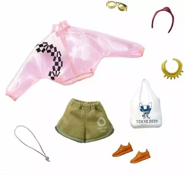 - Dieses Barbie-Modeset zeigt unverkennbare Symbole der Olympischen Sommerspiele 2020 auf Grafiken und Prints (Puppe nicht enthalten, separat erhältlich).