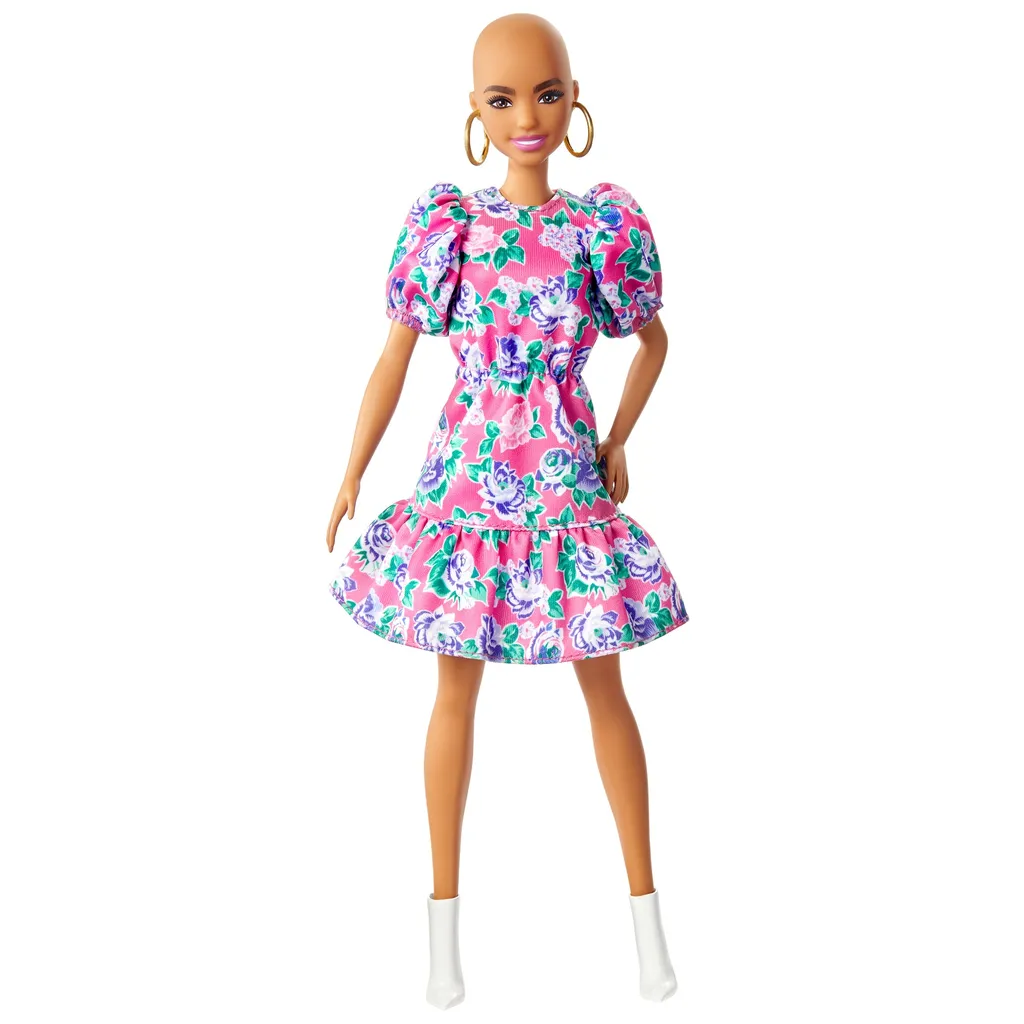 Barbie Fashionistas Puppe (mit Glatze) Im Blumenkleid, Anziehpuppe, Modepuppe