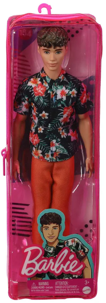Barbie Ken Fashionistas-Puppe , Kurze Braune Haare, Hawaiihemd Mit Blumenmuster, Orangefarbene, Umgekrempelte Hose, Weiße Schuhe Zum Hineinschlüpfen, Für Kinder Von 3 Bis 8 Jahren