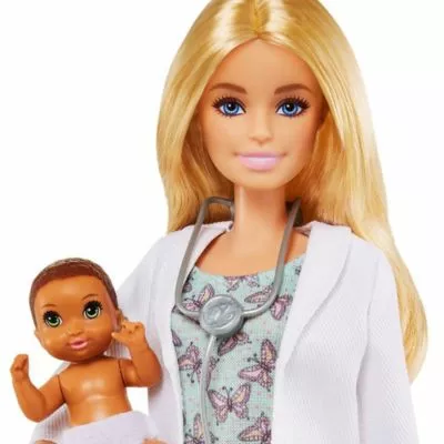 Barbie – Kinderärztin Spielset mit kleinen Patienten & Accessoires Entdecke mit dem Kinderärztin-Spielset eine Welt voller Pflegespaß! Wenn ein Mädchen mit Barbie spielt, stellt es sich vor, was alles aus ihr werden kann, und wenn du es liebst, dich um Babys zu kümmern, kannst du eine Kinderärztin sein! Das Spielset enthält die Barbie-Babyarztpuppe, die ein süßes Kleid mit Schmetterling-muster und einen weißen Arztkittel trägt, und ihren süßen kleinen Patienten, der eine Windel trägt. Das Spielset enthält außerdem 6 Zubehörteile: ein Stethoskop, ein Thermometer, ein Oszilloskop, ein Klemmbrett sowie eine rosa Babydecke und eine Babyflasche, damit ihr Patient glücklich und gesund bleibt. Die Barbie-Puppe kann nicht von allein stehen. Abweichungen in Farbe und Gestaltung vorbehalten. Geeignet für Kinder ab 3 Jahren! Warnhinweise des Herstellers: Achtung! Nicht geeignet für Kinder unter 36 Monaten! Artikel enthält (besteht aus) Kleinteilen, die verschluckt werden könnten. Erstickungsgefahr! Bitte entfernen Sie das gesamte Verpackungsmaterial, bevor Sie den Artikel Ihrem Kind übergeben! Hinweistexte und Herstellerdaten auf der Verpackung heben Sie bitte zur späteren Einsichtnahme auf!