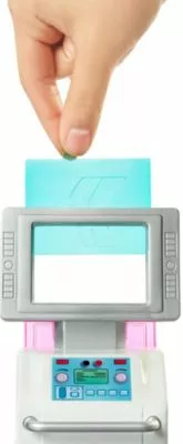 Barbie hat eine Praxis eröffnet. Mit dem „Barbie Krankenstation-Spielset“ von Mattel untersucht Barbie Patienten und behandelt sie auch. Auf der medizinischen Station steht eine Untersuchungsliege. Jetzt werden zunächst Röntgenbilder angefertigt und wenn Barbie herausgefunden hat, um welche Art Bein- oder Armbruch es sich handelt, wird ein Gips angelegt. Oder reicht ein fester Verband? Mit der beiliegenden Knetmasse in verschiedenen Farben (Rosa, Lila oder Weiß), können Verbände hergestellt werden, oder mit den Formen auch ein Gips an Arm oder Bein angepasst werden. Das umfassende Spielset enthält über 30 Zubehörteile für kreative Rollenspiele rund um das Thema „ärztliche Versorgung“. Die Barbie-Puppe trägt ein Kleid, einen Arztkittel und bequeme Schuhe.