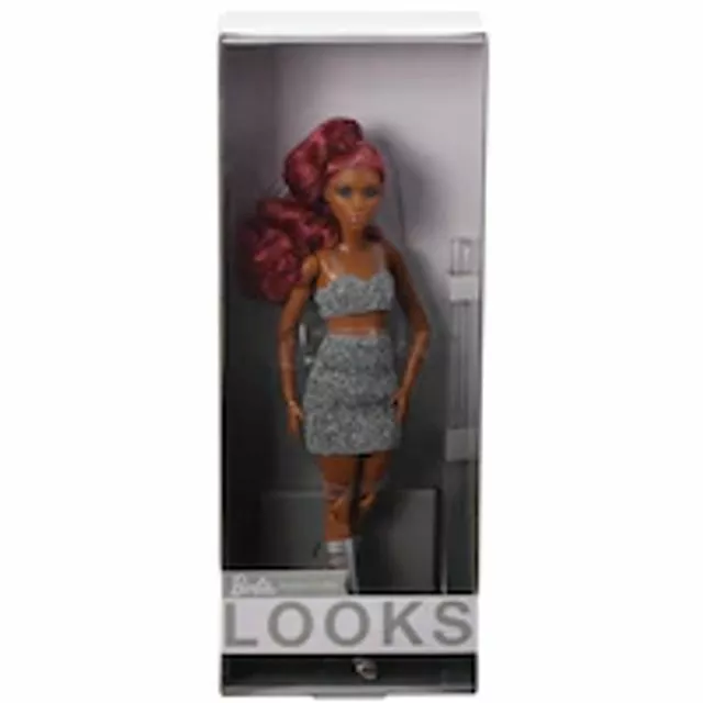 Featuring on-trend fashions with photo-worthy details, Barbie Looks dolls inspire the stylist within. With brand-new face sculpts and posable articulated bodies, they’re ready to style, pose, photograph and post. This Barbie Looks doll features a unique face sculpt and glossy red curls with high-fashion highlights. Her premium fashion includes a glittery crop top with a matching skirt and knee-high boots with cut-out details. Featuring fresh looks and style personality, Barbie Looks dolls make the perfect gift for stylists, fashion aficionados and Barbie(r) collectors. Discover them all to style the whole crew. Each sold separately, subject to availability. Includes doll stand and Certificate of Authenticity. Doll cannot stand alone. Colors and decorations may vary.