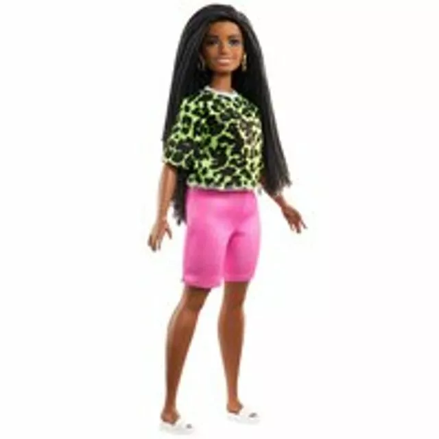 Barbie(r) and Ken Fashionistas celebrate diversity with fashion dolls that encourage real-world storytelling and open-ended dreams! With a wide variety of skin tones, eye colors, hair colors and textures, body types and fashions, the dolls are designed to reflect the world kids see today — and their attention-grabbing outfits help them stand out with personalities that pop! Use the reusable vinyl package to fill, carry and customize — store Barbie(r) fashions and accessories, carry a doll anywhere, even decorate it and use for self-expression! Kids can collect Barbie(r) dolls and accessories for infinite ways to play out stories, express their own style and discover that fashion is fun for everyone! Includes Barbie(r) Fashionistas doll wearing fashions and accessories. Each sold separately, subject to availability. Barbie(r) dolls cannot stand alone. Flat shoes fit dolls with articulated ankles or flat feet. Colors and decorations may vary.