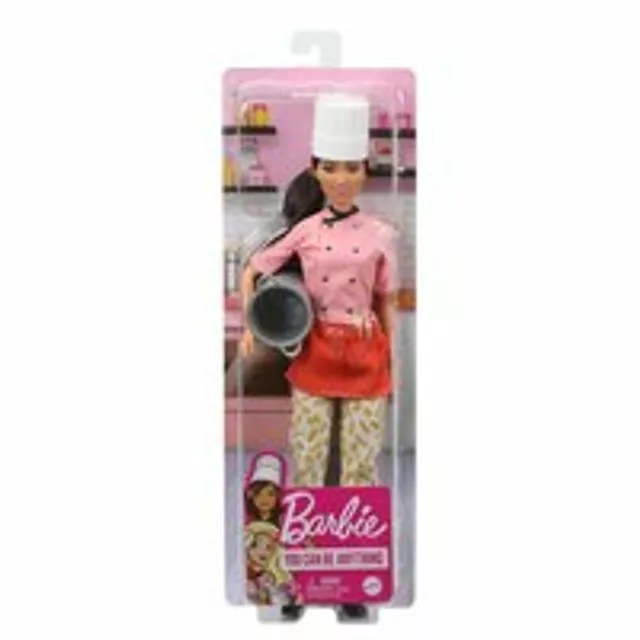 Explore a world of cooking fun with the Barbie(r) pasta chef doll! When a girl plays with Barbie(r), she imagines everything she can become, and if you love pasta and cooking you can be a pasta chef! The Barbie(r) pasta chef doll (12-in/30.40-cm) wears a colorful chef top, cute macaroni-print pants, a white chef hat and a sporty ponytail. She also comes with a pasta pot and pasta cutter that she can hold while “cooking.” Kids will love the endless possibilities for creative expression and storytelling fun. Doll cannot stand alone. Colors and decorations may vary. Makes a great gift for ages 3 years old and up.