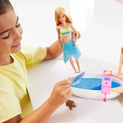 Barbie Wellnesstag Puppe Sprudelndes Bad, Anziehpuppe (blond), Barbie Badewanne