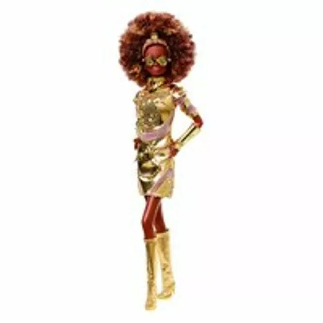 The Star Wars x Barbie(r) collection, inspired by the films’ original concept art, re-imagines iconic Star Wars characters through a distinctive Barbie high-fashion filter. Programmed for etiquette and protocol and built by the heroic Jedi Anakin Skywalker, C-3PO was involved in some of the galaxy’s most defining moments and thrilling battles. This collectible Star Wars x Barbie(r) doll takes design inspiration from C-3PO’s legendary look to capture his golden armor in a runway-ready silhouette. Star Wars C-3PO x Barbie(r) doll shines in a head-to-toe liquid gold look with accents of sheer organza and golden sequins. Polished details include a golden collar, bangles, C-3PO-inspired glasses and a brilliant cincture echoing the droid’s primary power coupler outlet. Star Wars C-3PO x Barbie(r) doll makes the perfect addition to any collection and a great gift for Star Wars and Barbie(r) fans. Includes a Star Wars doll stand and Certificate of Authenticity. Doll cannot stand alone. Colors and decorations may vary.